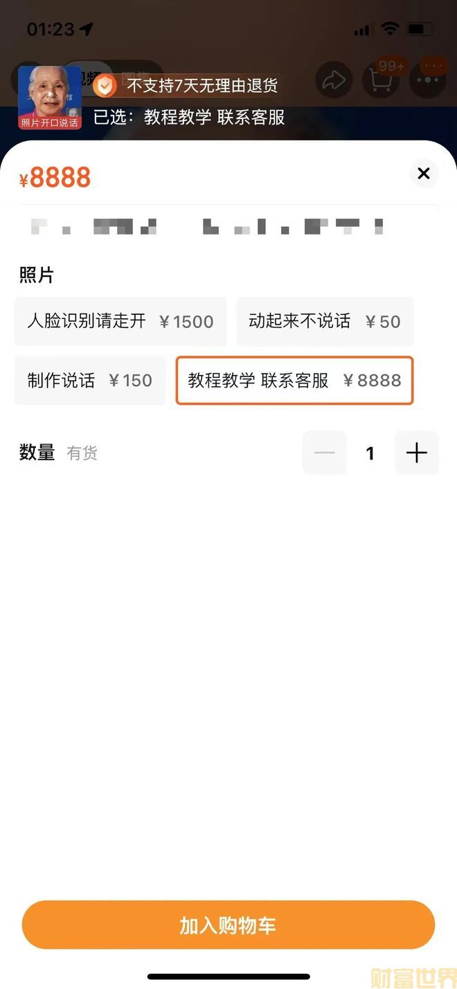 据了解,电商平台店铺常见的“包会照片生成动态视频”课程价格在1500元左右,课程主要设置有:数字人生成网站推荐、网站操作教学。如果想要学习更专业的操作,则需要加钱。