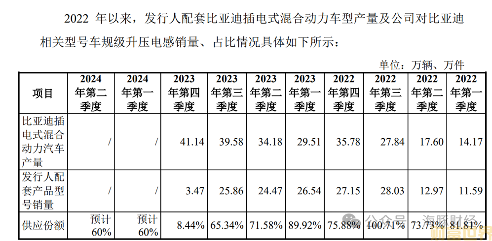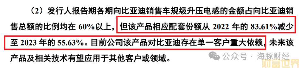 此外,鹰峰电子也承认,车规级升压电感产品对比亚迪存在单一客户重大依赖。