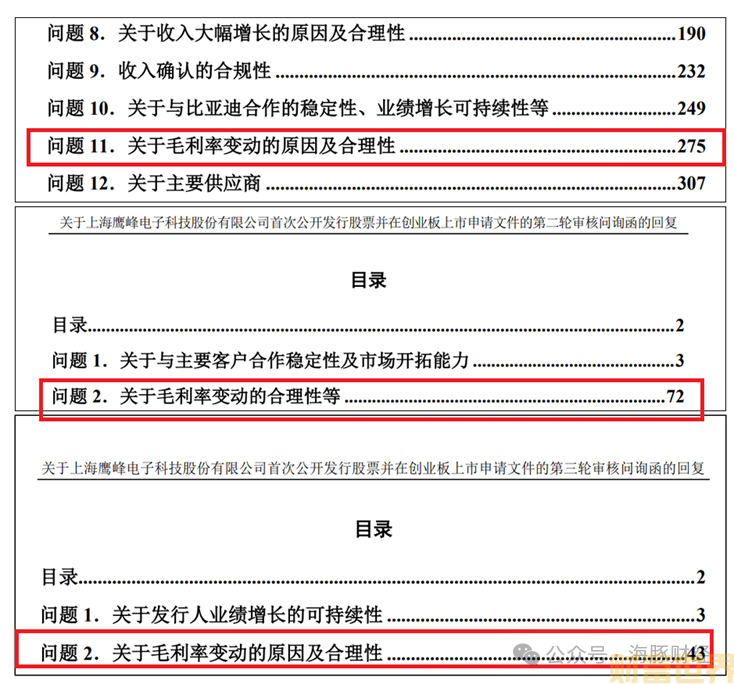 交易所三轮问询紧盯毛利率问题,也说明对鹰峰电子及其保荐人相关披露与回复的真实性与完整性并不满意。