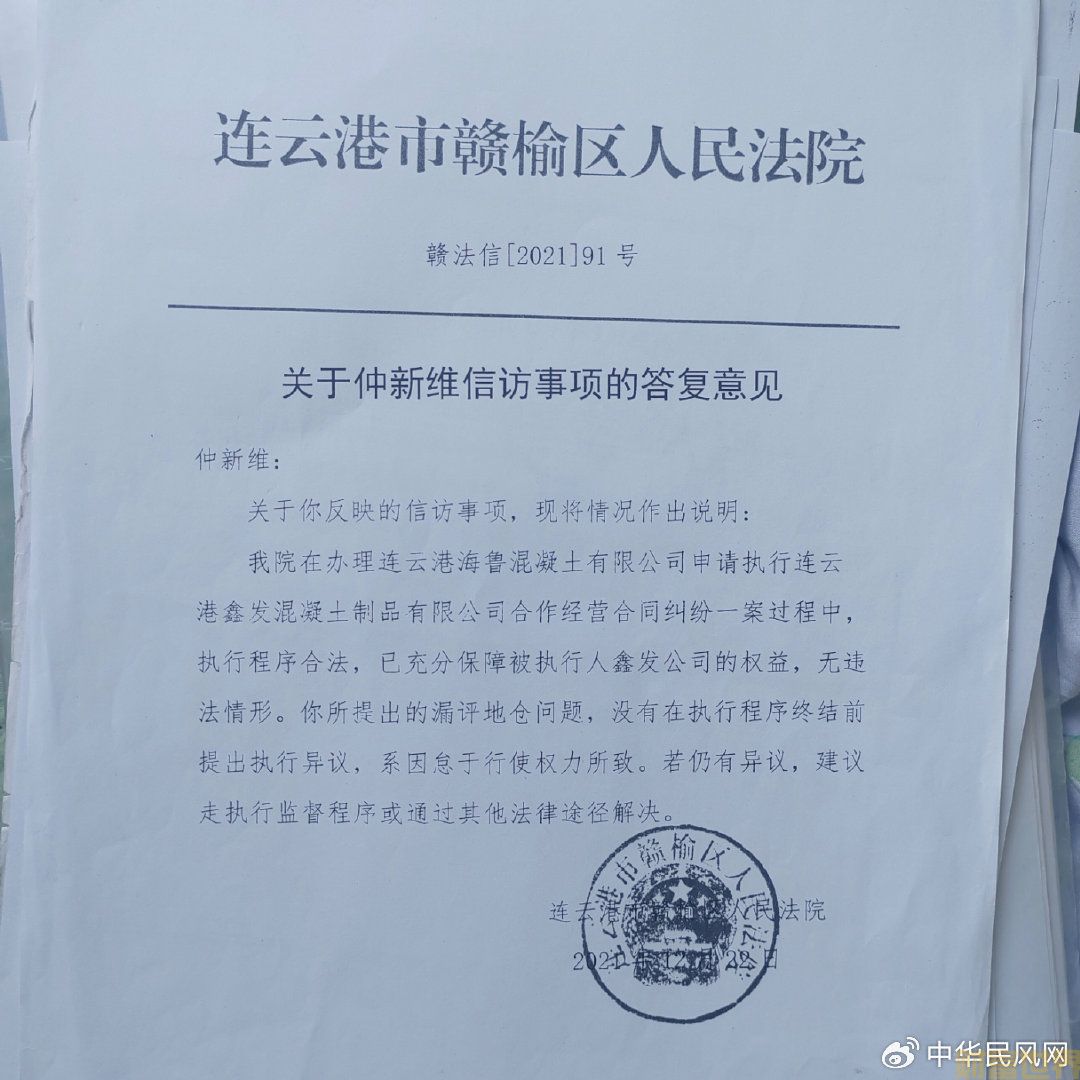 今年已经65岁的仲新维是江苏连云港赣榆区人,年轻时在青海当兵,1984年退伍回家乡筹资兴办了一家名为连云港鑫发混凝土有限公司的企业。因不慎得罪了一名据民间盛传在当地“没人敢惹的主”,结果企业遭到有预谋的连环诈骗,企业上千万的资产被瓜分殆尽。然而,就在仲新维老人为上述案依法艰难维权期间,赣榆区(时为赣榆县)法院针对该企业的一场司法拍卖,又给仲新维老人当头来了一棒!