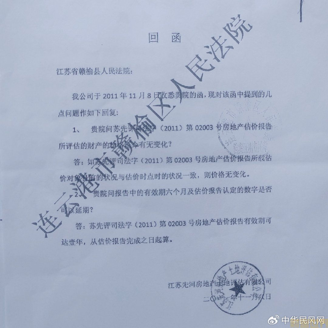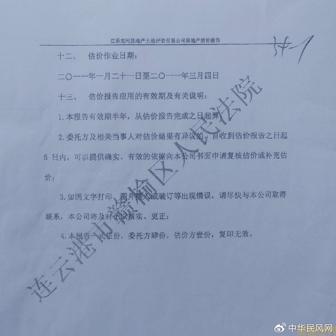 四、据这次拍卖的江苏先河房地产土地评估有限公司房地产估价报告十二、估价作业日期:二O一一年一月二十一日至二O一一年三月四日,十三、估价报告应用的有效期及有关说明:1、本报告有效期半年,从估价报告完成之日起算;对此,连云港鑫发混凝土制品有限公司向法院提出执行异议称资产评估报告已超过有效期,法院竟然让江苏先河房地产土地评估有限公司出了一个补充回函,说该评估报告的有效期可达一年,从估价报告完成之日起算。依此,法院说公司提出的执行程序不合法无事实依据。无奈下,仲新维依法向赣榆区(时为县)人民检察院申请立案监督,赣榆检察院经审查已于2014年1月24日以赣检民(行)[2014]1号检察建议书向赣榆县人民法院提出检察建议。对此,仲新维说,但时至目前,赣榆法院再无回音。